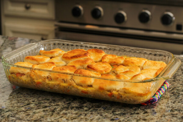 This comforting chicken pot pie casserole makes a hearty fall meal