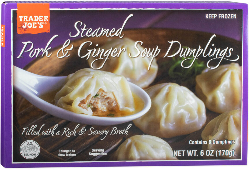 One container of Trader Joe’s Steamed Pork & Ginger Soup Dumplings has 270 calories with 14 grams of protein.